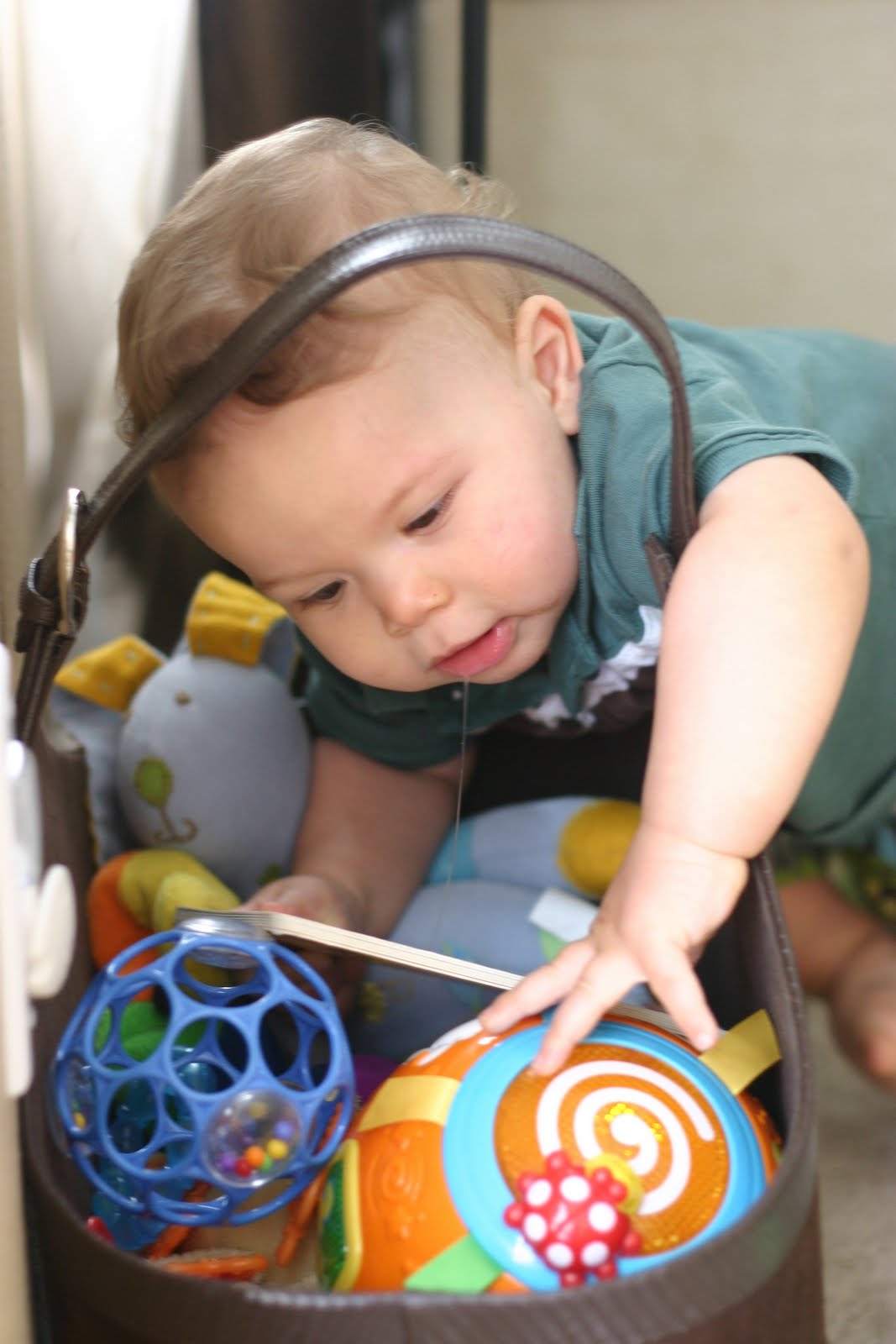 Bruin is super mobile. I wouldn't call it crawling just yet. It is more of the army crawl thing right now, but he can certainly get to where he wants to go, and quick! he is currently most attracted to black electrical cords, and Payton's water dish. :) I think in the next couple of weeks he'll be full on crawling. He's has graduated to people food now. We still feed him his baby food, and formula - but he is able to put down some mashed up people food too. He is growing so dang fast! He is incredibly vocal too. No words yet, but he definitely like to hear himself talk! Lastly, he really likes the ladies (good job son). Whenever we're out and about, if he sees someone next to us or whatever, he is ALL smiles! It is hilarious!